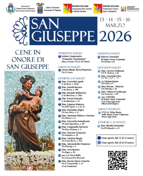 Le Cene di San Giuseppe raccontano la storia, le fede e le tradizioni di Santa Croce Camerina. Queste tavole preparate con cura e passione in onore del Santo – per devozione o per grazia ricevuta – rappresentano uno dei cardini dei festeggiamenti.